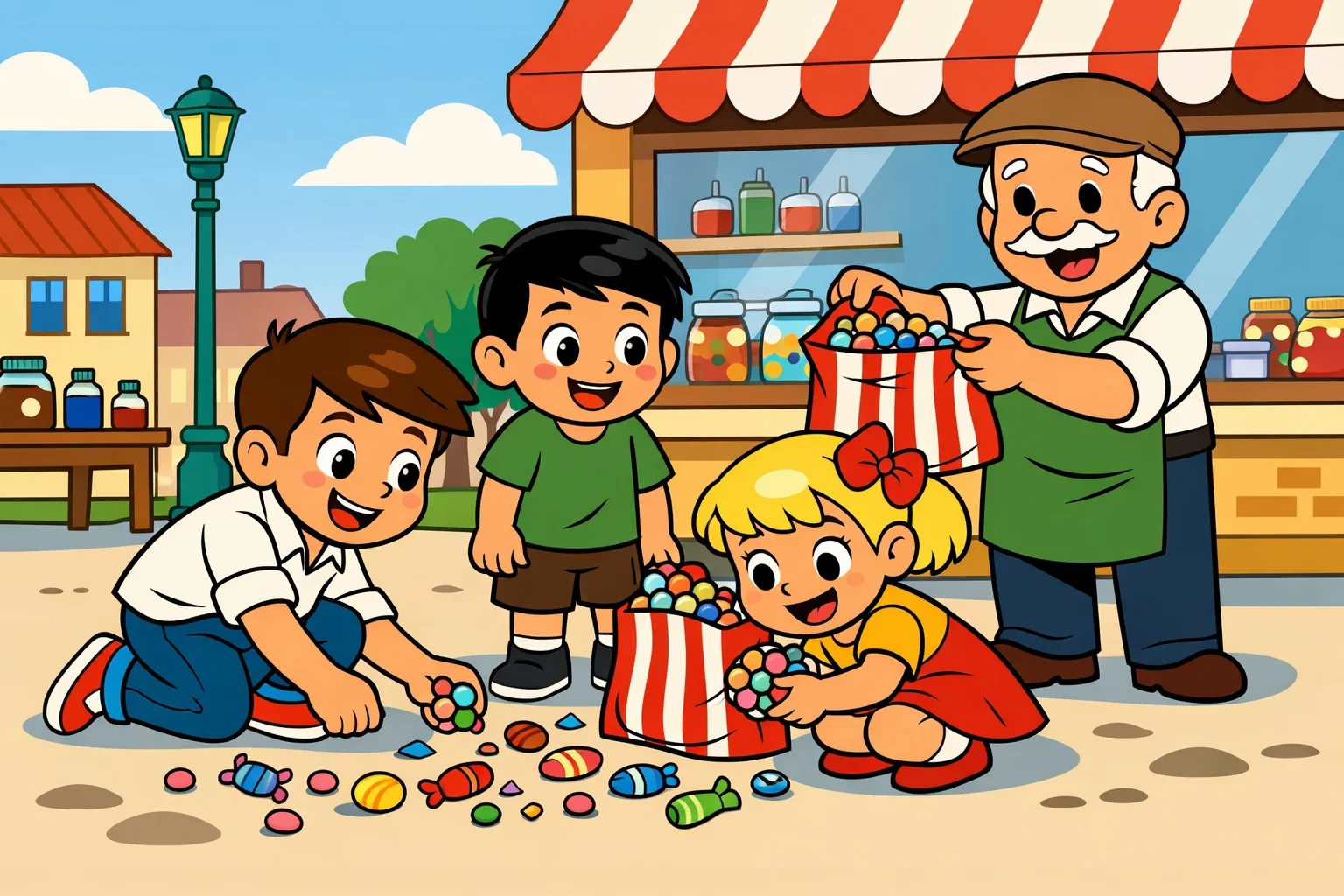 Sokağın köşesinde mahalle bakkalı Sami Amca vardı. Dükkanının önünde bir çocuk ağlıyordu: Baran. Baran’ın elinde bir torba vardı ama torbanın dibi yırtılmış, içindeki şekerlemeler yere saçılmıştı.