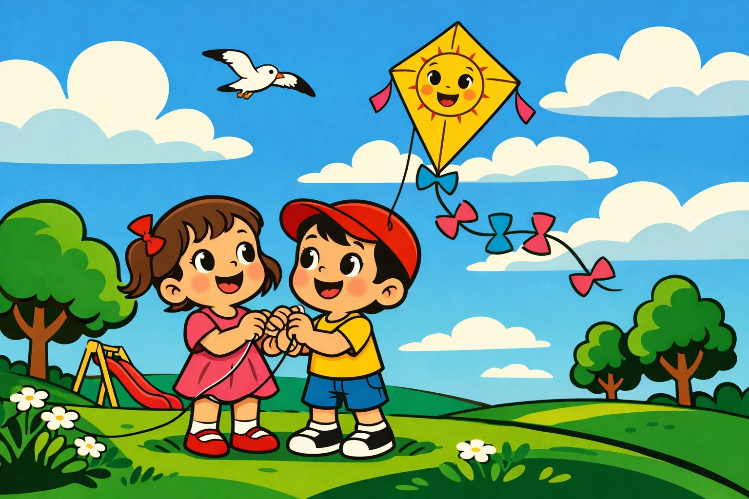 Ve o gün, parkta rüzgâr tatlı tatlı esmeye devam etti. Bulutlar pamuk pamuk gülümsedi. Mina’nın uçurtması dinlendi. Mina’nın kalbi ise uçurtma gibi hafifledi: “Birlikte olunca, her oyun daha güzel.”