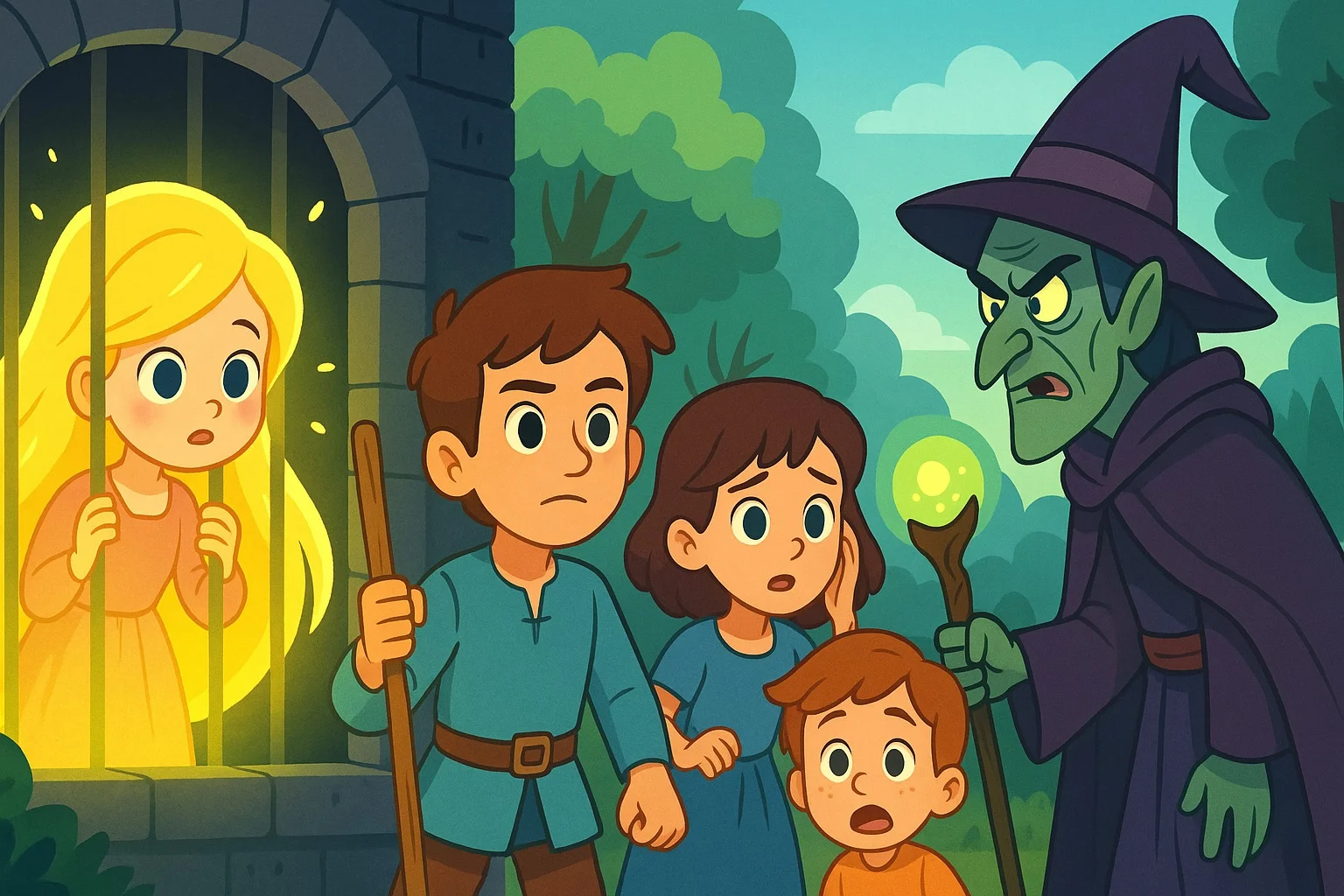 Bir gün köy meydanında bir söylenti yayılmış. Yakındaki karanlık ormanda yaşayan kötü kalpli bir büyücü, köyün mutluluğunu kıskanmış. Büyücü, köyün en değerli varlığını —Altın Saçlı Kız’ı— kaçırıp sonsuza kadar kendi karanlık şatosunda saklamaya karar vermiş.