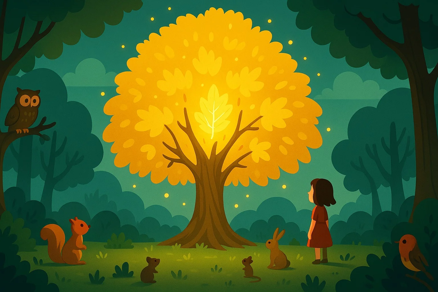 Bir zamanlar, gökyüzüne dokunacak kadar uzun, dalları bulutların arasına karışmış bir orman vardı. Bu ormanda her ağaç yeşildi, her yaprak rüzgârla dans ederdi. Ama ormanın tam ortasında öyle bir ağaç vardı ki, onu görenin nefesi kesilirdi: Altın Yapraklı Ağaç.