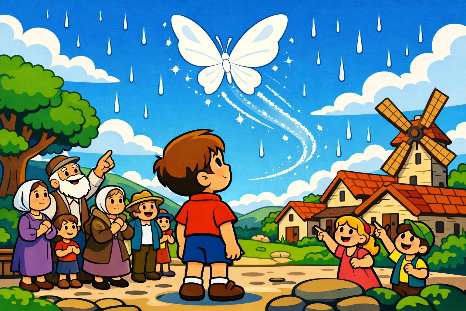 O an, gökyüzünde hafif bir rüzgar esti. Ceviz ağacının olduğu taraftan beyaz bir ışık süzüldü. Beyaz kelebek, köy meydanının üzerinde dönmeye başladı. İnsanlar hayretle bakıyordu.