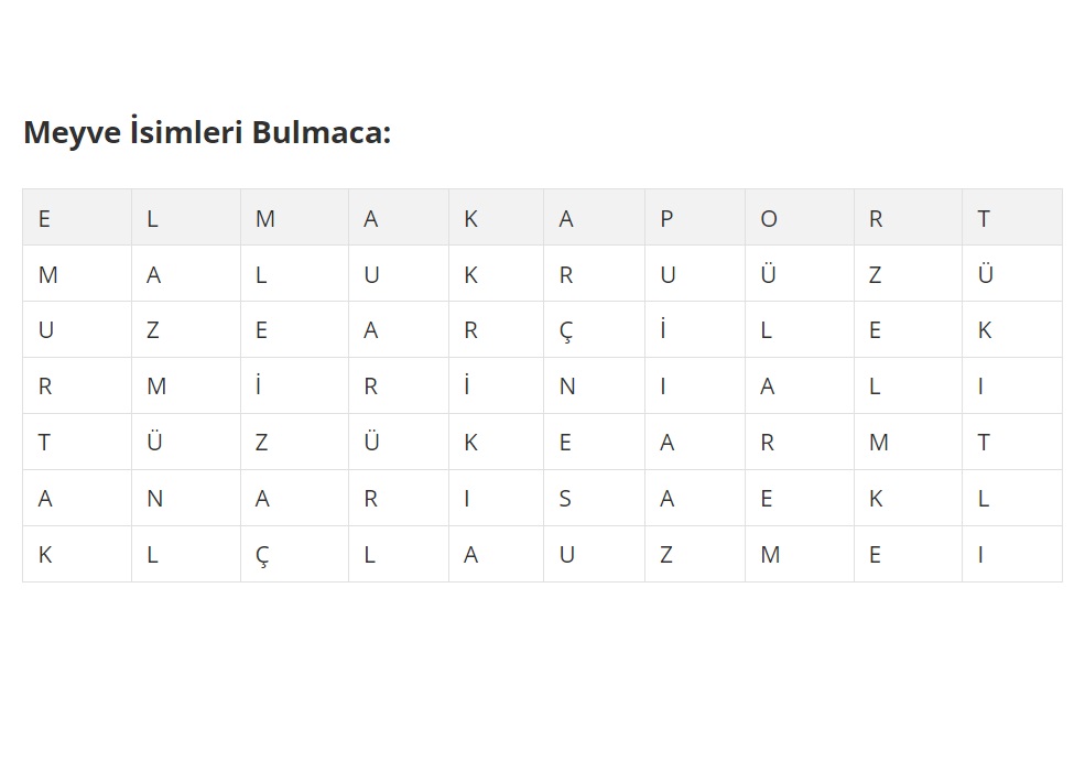 Meyve İsimleri Bulmaca & Bilmece Oyunu