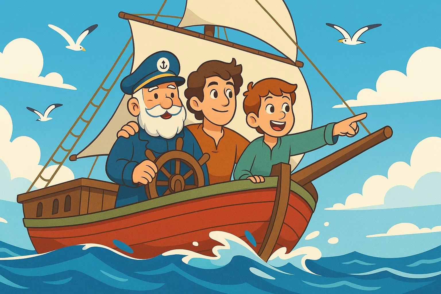 Bir varmış, bir yokmuş… Uzak denizlerin maviyle yeşilin dans ettiği bir yerinde, yelkenleri beyaz bulut gibi görünen büyük bir gemi süzülürmüş. Bu geminin adı "Gökyüzü Kuşu", kaptanı ise Kaptan Martı’ymış. Kaptan Martı, sadece denizlerin değil, çocukların da sevgilisiymiş. Uzun sakalı, iri gülüşü ve sımsıcak kalbiyle herkes onu severmiş.