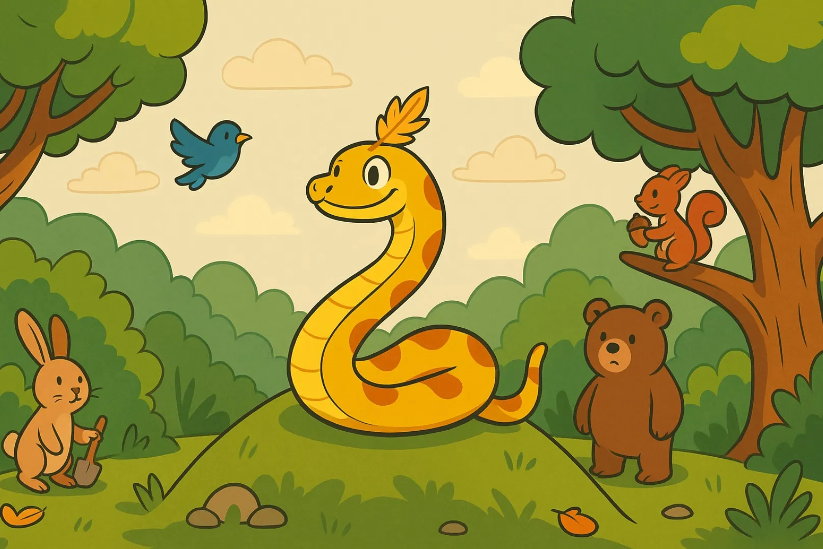 Ama bu huzurlu ormanda bir de Zikzak adında genç bir yılan yaşarmış. Zikzak, diğer yılanlardan çok farklıymış. O, sıradan bir yılan olmaktan hoşlanmazmış. Hep daha fazlasını ister, hep daha yükseği hedeflermiş.