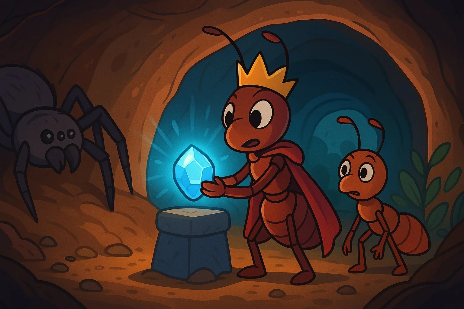 Işık Taşı'nın parıltısı yavaşça sönerken, Minu derin bir nefes aldı. Artık o sadece meraklı bir genç karınca değildi. Cesaretle yürüdüğü yol, onu Karınca Kralı yapmıştı.