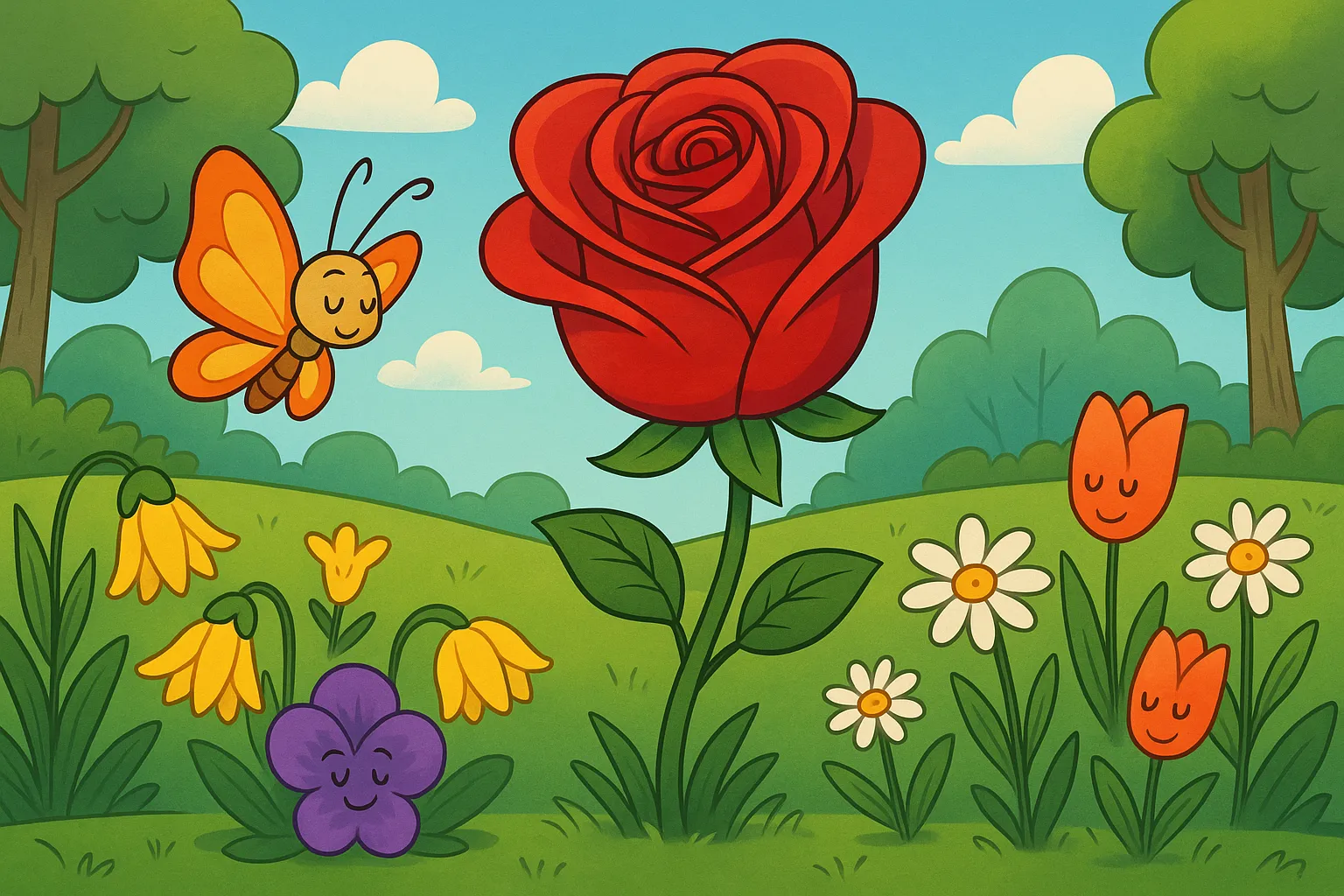Bu bahçenin en dikkat çeken çiçeği ise kocaman kırmızı yaprakları ve zarif duruşuyla bir gülmüş. Adı da Koralmış. Ama ne yazık ki Koral sadece güzelliğiyle değil, kibriyle de meşhurmuş. Her sabah yapraklarını rüzgârla savurur, etrafındaki çiçeklere yukarıdan bakar, onlarla pek konuşmazmış.