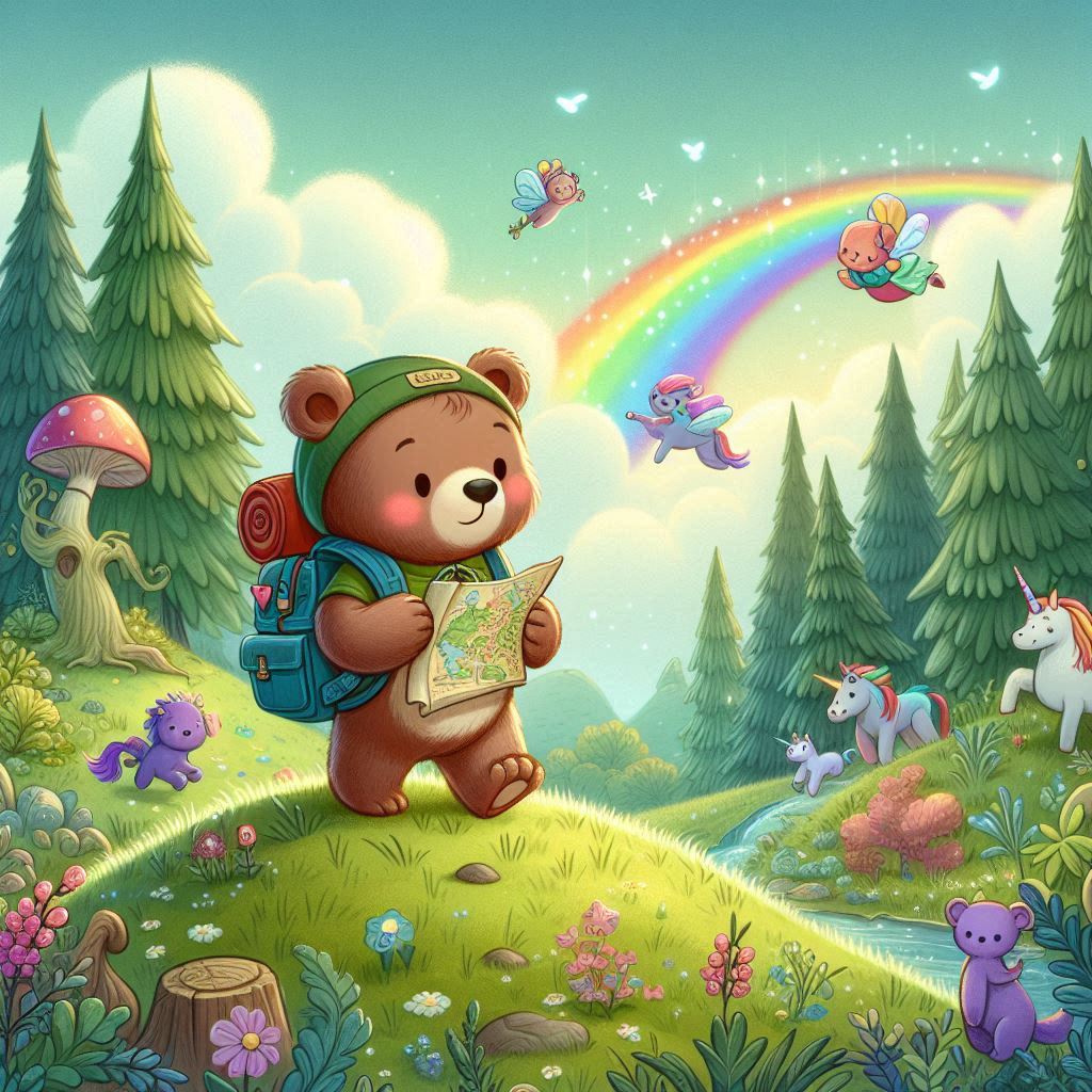 İkili, haritayı inceleyerek yola devam etmişler. Harita onları sık ağaçlıkların arasından geçirip, bir tepenin yamacına getirmiş. Tepeden aşağıya baktıklarında, vadinin parıltısını görmüşler. Vadinin içi rengarenk çiçekler ve büyülü bitkilerle doluymuş. “İşte orası! Gizemli Renkler Vadisi!” demiş Küçük Ayı.