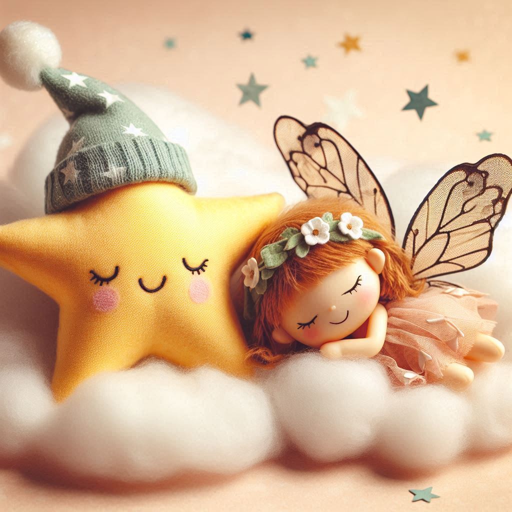 Küçük Yıldız, Uyku Perisi’nin sıcak ve huzur veren dokunuşunu hissetmiş. Uyku Perisi, sihirli tozlarından bir avuç almış ve nazikçe Küçük Yıldız’ın üzerine serpiştirmiş. Bu tozlar, Küçük Yıldız’ın üzerine dökülürken, onu bir sıcaklık ve huzur dalgası sarmış.