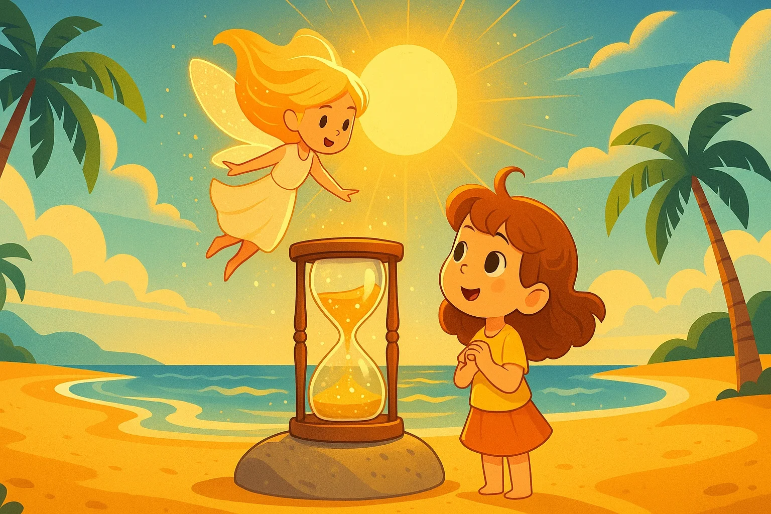 Güneşköy’ün en büyük sırrı ise, deniz kenarındaki eski bir taşın üstünde duran kum saatiymiş. Ne zaman dalgalar sahili okşasa, kum saati içindeki taneler parlamaya başlar, sanki güneşin içinden doğan altın tozlarıymış gibi ışıldarmış.
