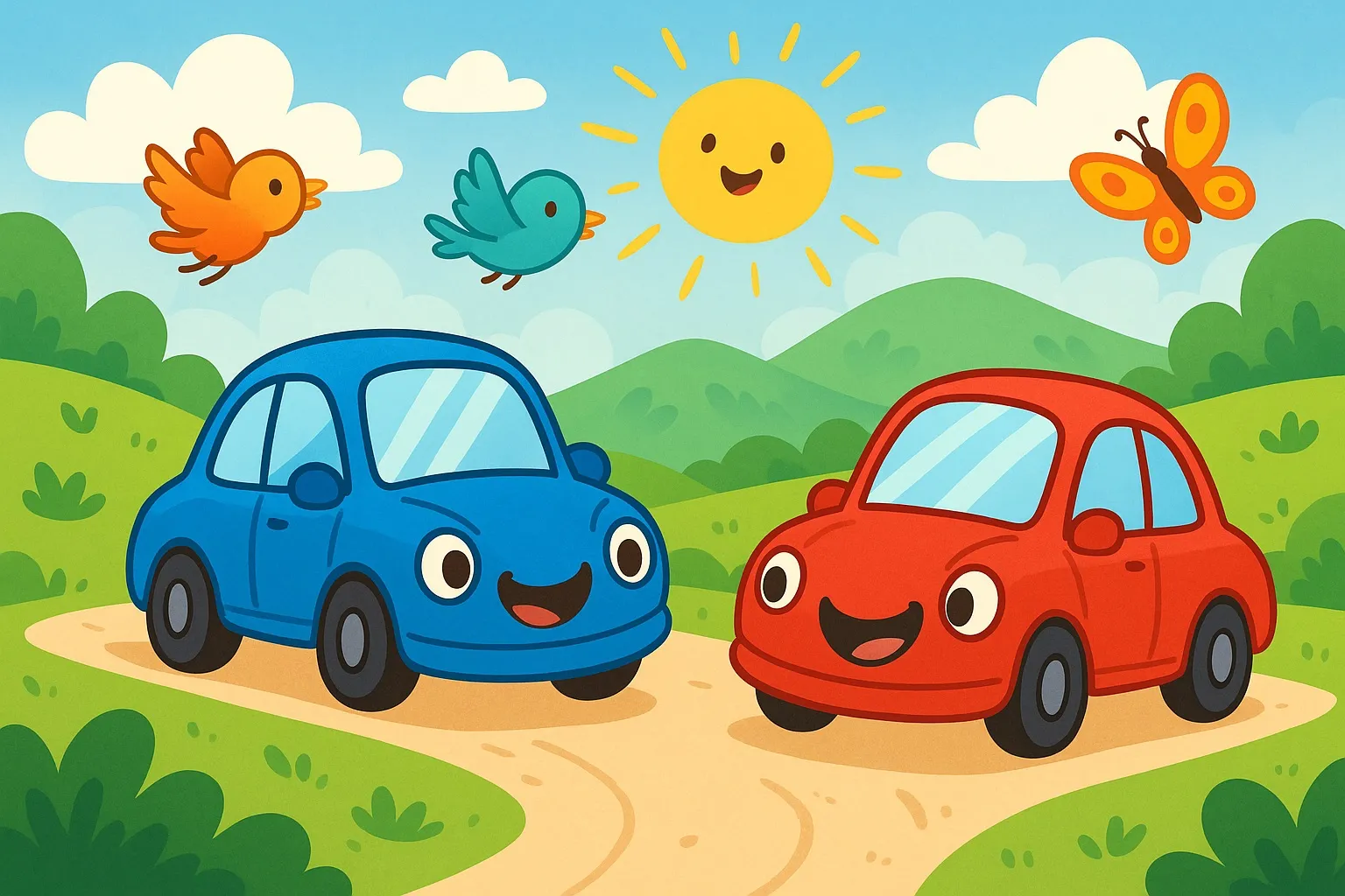Bir zamanlar, geniş ve yemyeşil bir vadinin kalbinde, gökyüzü gibi parlak, deniz kadar derin bir renge sahip olan mavi bir araba yaşardı. Adı "Mavi" idi ve her sabah motorunu neşeyle çalıştırarak, rüzgarın serinliğini hissederek vadide gezintiye çıkardı. Mavi, sadece rüzgarı hissetmekle kalmaz, aynı zamanda doğanın melodisini dinlerdi; kuşların cıvıltısı, yaprakların hışırtısı ve uzaklardan gelen nehrin şırıltısı onun en sevdiği şarkılardı.