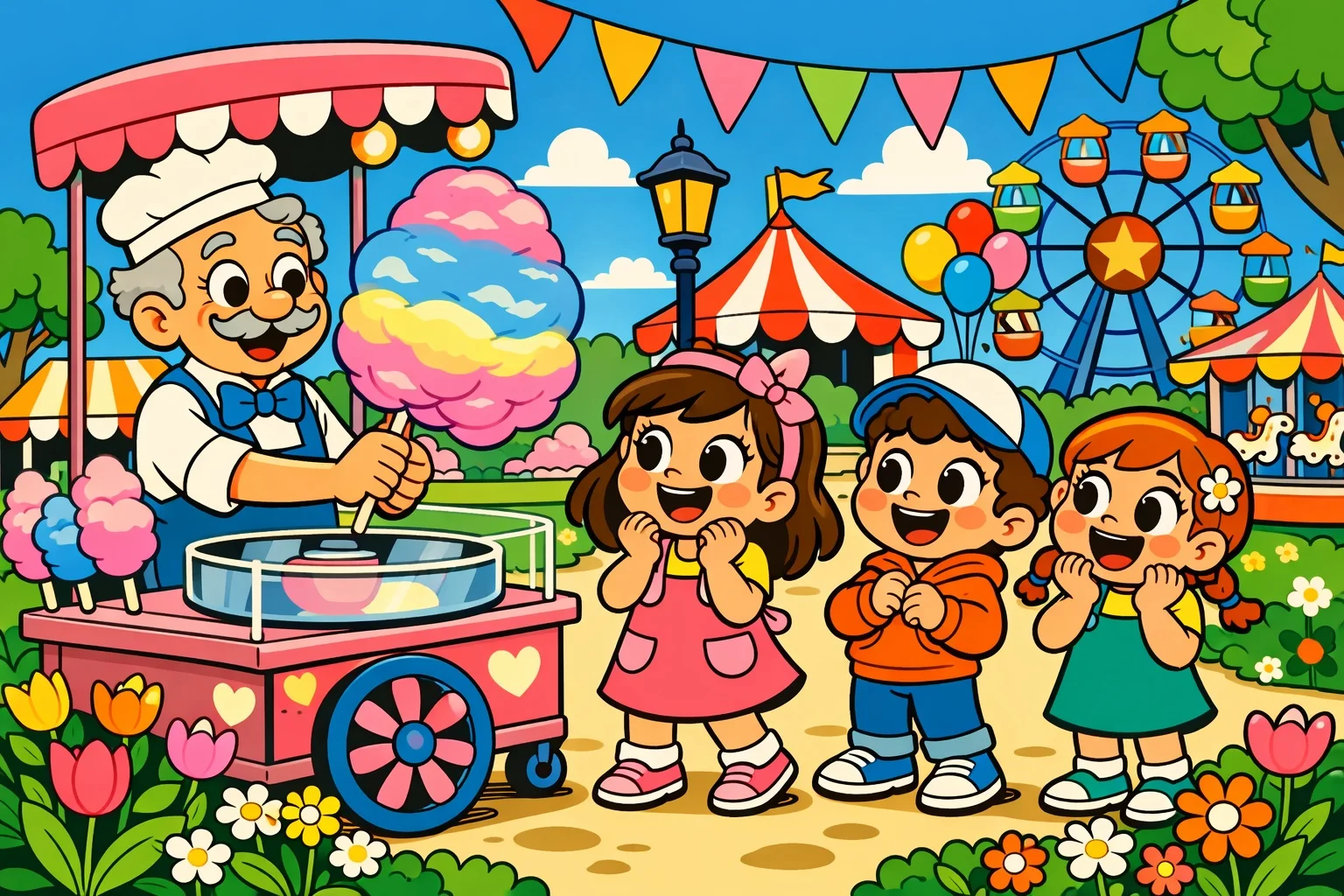 — Bugün anladım ki pamuk şeker sadece tatlı değilmiş… Bazen dostlukmuş, bazen kahkahaymış, bazen de kalbin sevinciymiş.