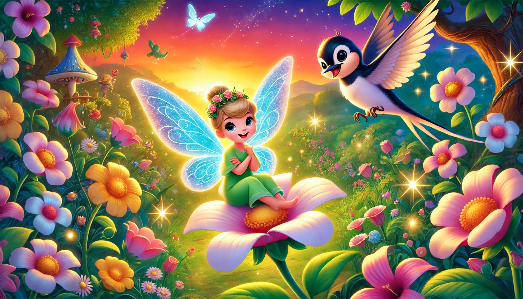 Uçtukça uçmuşlar, ormanları, nehirleri, dağları geçmişler. Sonunda, hiç görmediği kadar güzel, çiçeklerle dolu bir ülkeye varmışlar. Orada rengârenk kelebekler, şırıl şırıl akan sular, ışıl ışıl açan çiçekler varmış. Ama en güzeli, çiçeklerin ortasında yaşayan minik insanlar varmış. Onlardan biri, altın gibi parlayan kanatlarıyla yaklaşıp gülümsemiş. Bu, Çiçek Perisi Prensi’ymiş.