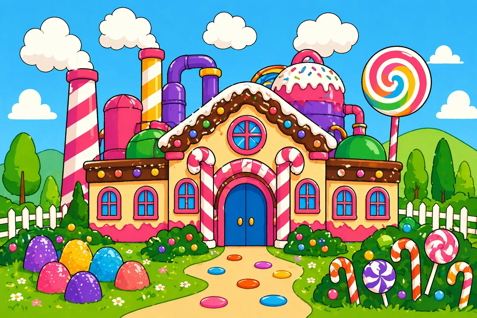 Bir zamanlar, gökyüzünün bile şeker pembesi göründüğü, kuşların neşeyle şarkılar söylediği bir vadide, herkesin dilinden düşmeyen büyülü bir yer vardı: Şeker Fabrikası. Bu fabrika sıradan değildi; kapısından içeri giren herkes kendini bir masalın içinde bulurdu. Duvarları karamelle kaplıydı, zemininde şeker kristalleri parıldardı ve tavandan sarkan rengârenk şekerlemeler hafif rüzgârla dans ederdi.