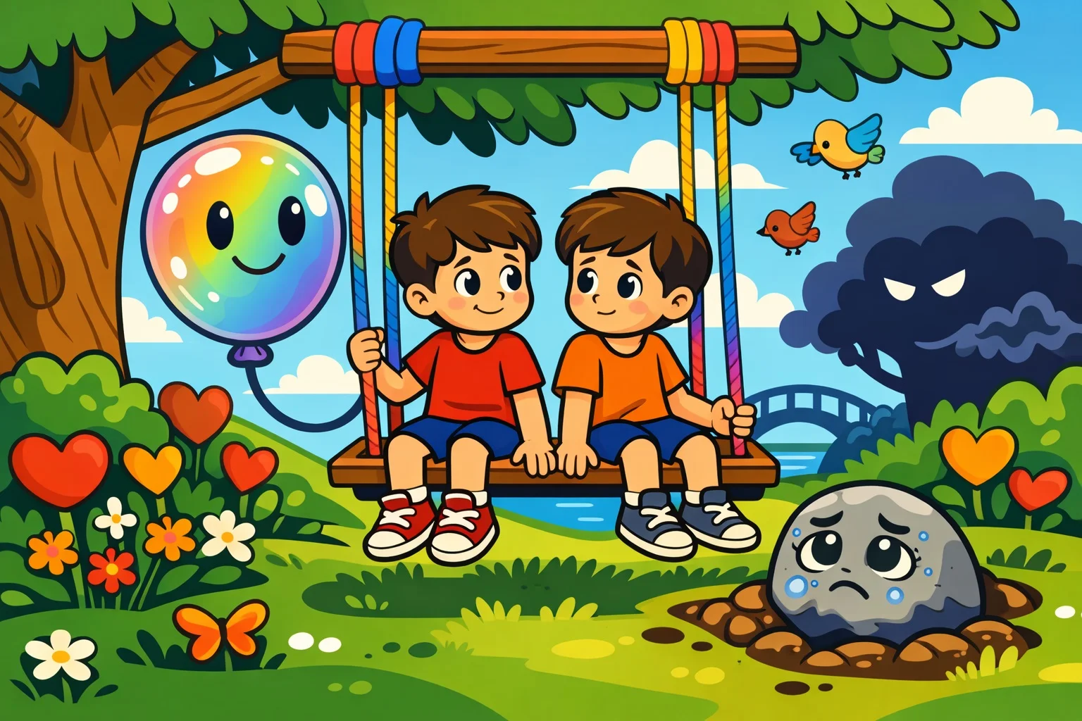 Efe yürümeye devam etti. Bahçenin ortasında dev bir salıncak vardı; salıncağın ipleri gökkuşağıydı. Salıncakta bir çocuk oturuyordu. Ama bu çocuk Efe’ye çok benziyordu. Saçları aynı, kaşları aynı… Sadece gözleri daha yorgundu.