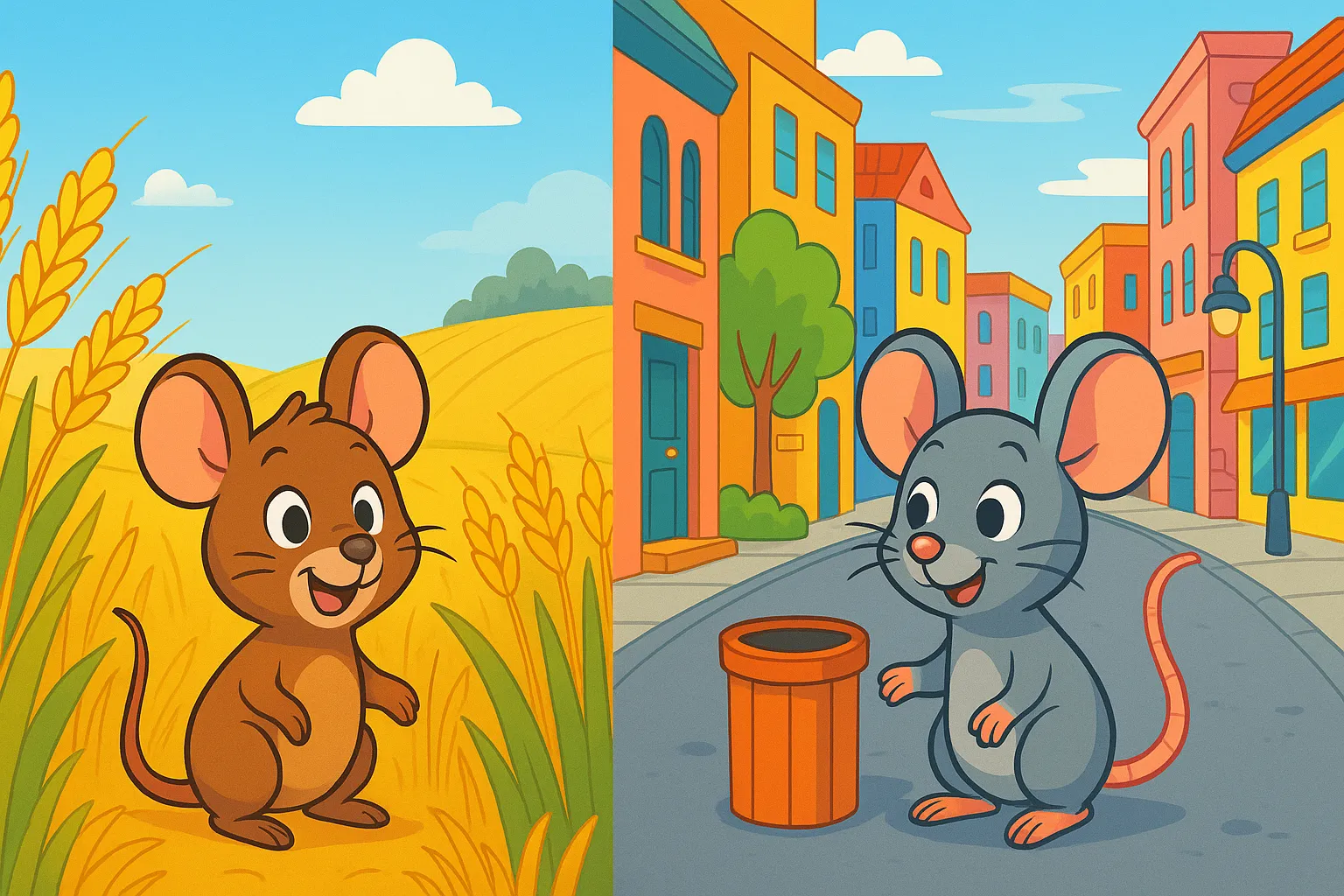 “Hoş geldin, canım kuzenim Tarla Faresi!” diye sevinçle çığırmış Şehir Faresi. “Burda her şey çok farklı, sana en özel sofralarımızı göstereceğim.” Tarla Faresi hafifçe titremiş, ama gülümsemiş: “Selam, sevgili kuzen. Burası heyecan verici görünüyor. Ama benim biraz tedirginim; ben sessiz ve sakin ortamda büyüdüm. Umarım kendimi güvende hissederim.”