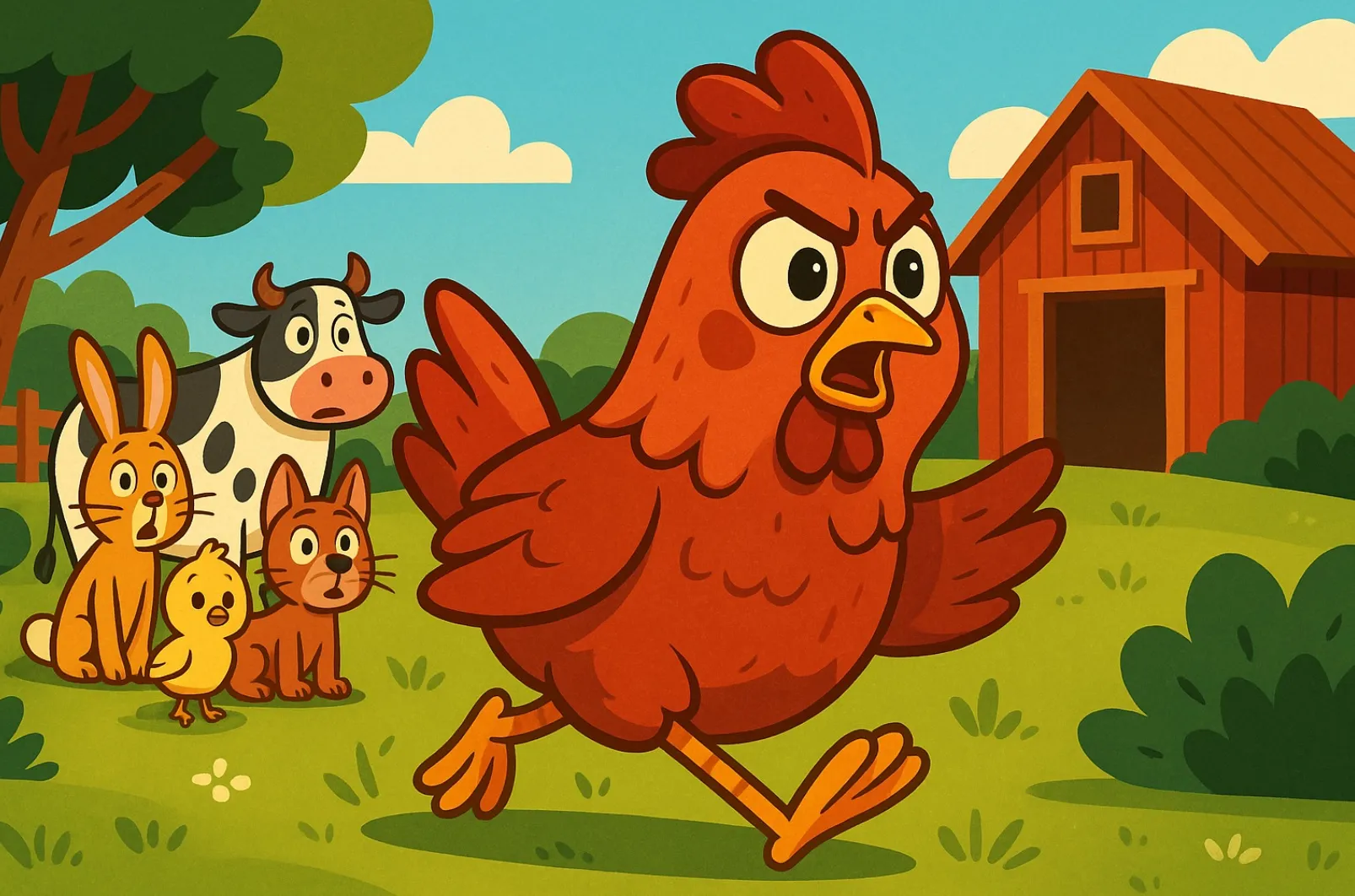 Tilda, kırmızı tüyleriyle köyün en dikkat çeken tavuğuymuş ama aynı zamanda en tembeliymiş. Ne yumurta yumurtlamak istermiş ne de sabah kahvaltısı için yem aramak. Gün boyu güneşin altında gölgelenip uyumayı severmiş.