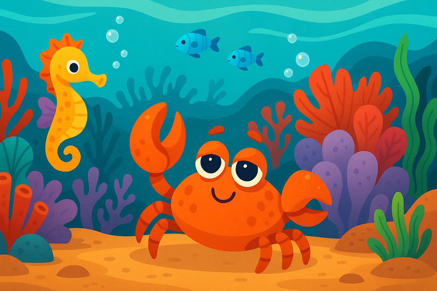 Masmavi denizlerin dibinde, mercanlarla süslü bir koyda yaşayan küçük bir yengeç varmış. Adı Momo’ymuş. Momo diğer yengeçlerden çok farklıymış. Çünkü o, her zaman uykuluymuş.