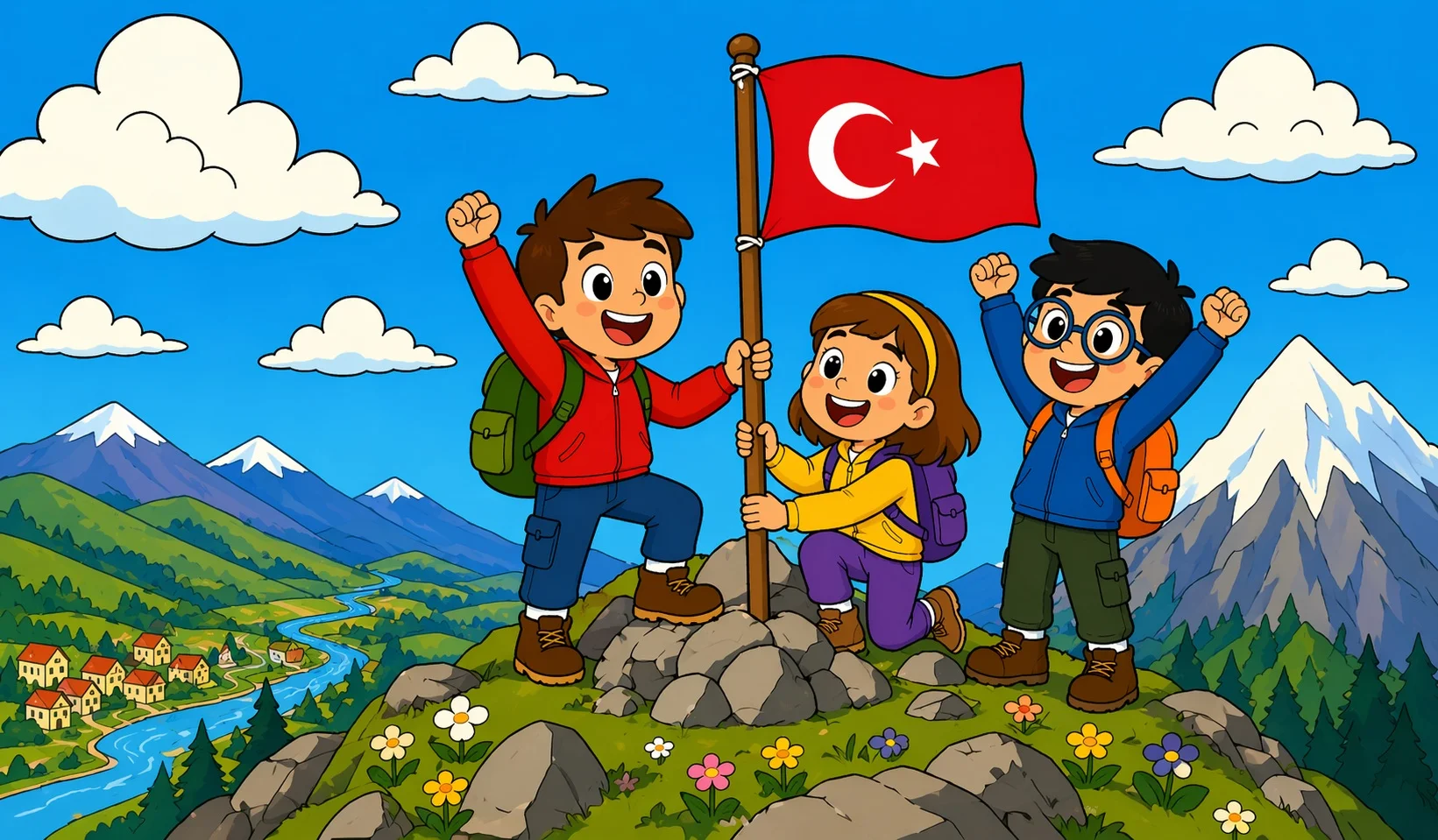 Üç arkadaş bir süre hayran hayran etrafa bakmış. Sonra Baran cebinden dikkatle katlanmış Türk bayrağını çıkarmış. Hep birlikte uygun bir yer bulmuşlar. Küçük bir çubuğu sağlamca yerleştirip bayrağı oraya bağlamışlar. Rüzgâr hafifçe esince Türk bayrağı dalgalanmaya başlamış.