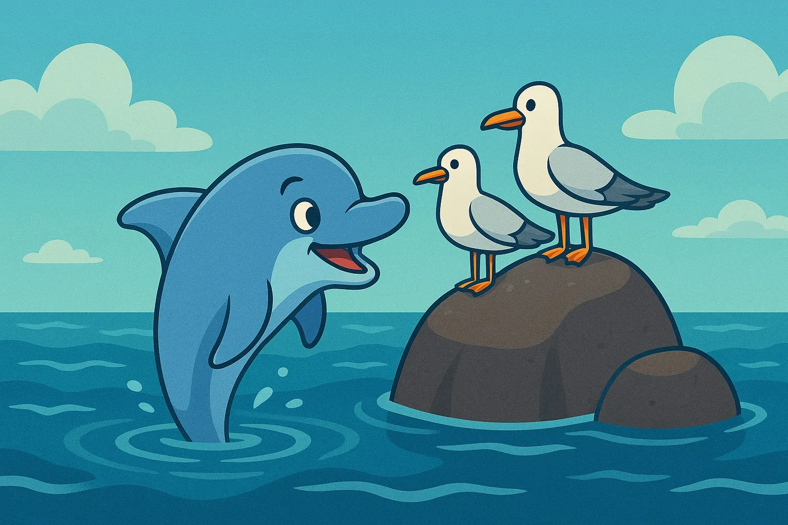 Uzak denizlerin birinde, mavi dalgaların arasında neşe içinde yaşayan bir yunus vardı. Adı Mero idi. Gözleri parlak, sırtı gümüş gibi parlayan Mero, sadece hızlı yüzmesiyle değil, iyi kalbiyle de herkesin sevgilisiydi.